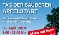 Gemeinsames Müllsammeln am Samstag, den 6. April 2019. Regelmäßig im Frühjahr findet in Tönisvorst die Aktion „Tag der sauberen Apfelstadt“ statt. Organisatoren sind die Tönisvorster CDU-Fraktion,…